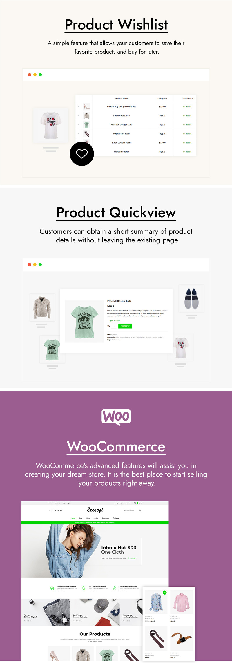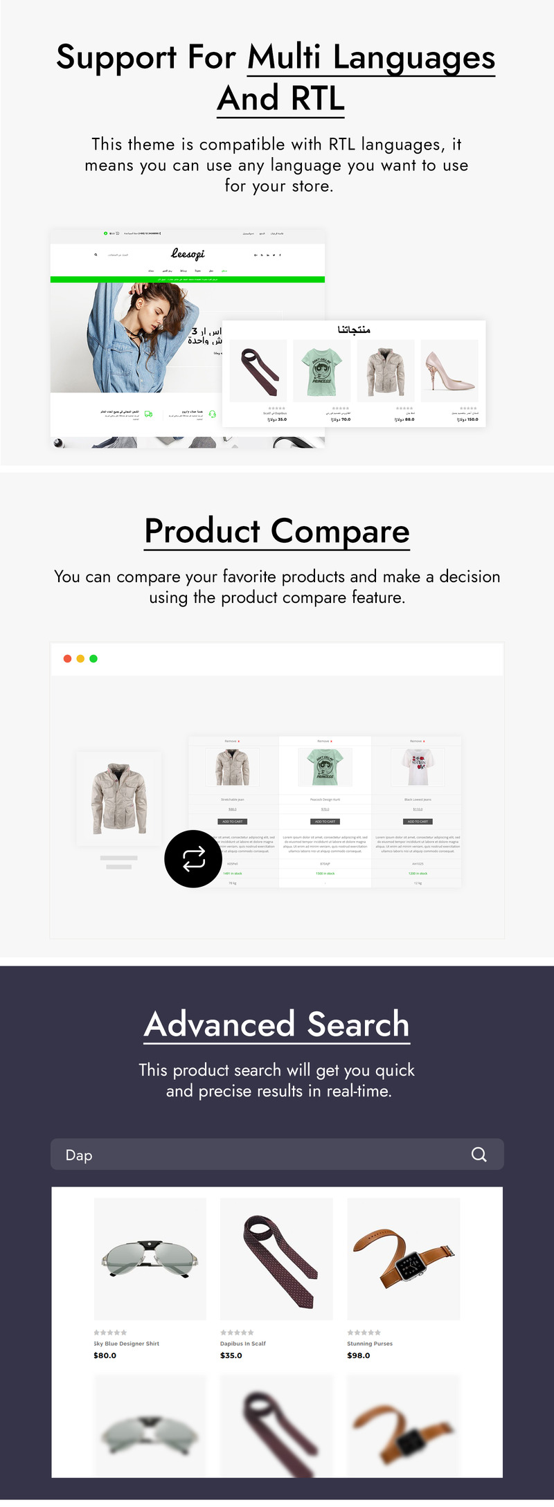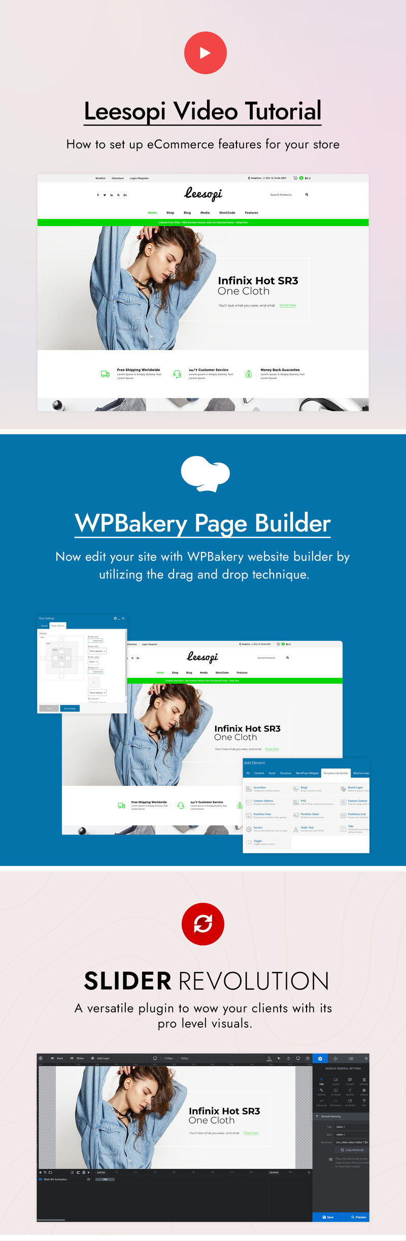 Leesopi is a modern and flexible WooCommerce Marketplace WordPress theme. This theme ideal for fashion style, fashion accessories, purs, clothes, watches, gadget, gift and flowers store. It is also multipurpose theme which can be used for any kind of online store. Leesopi is 100% Responsive which means that no matter the device, your website will scale beautifully to suit each device each time. And thanks to the most popular and powerful WooCommerce plugin you can create a versatile and completely customizable shop. This theme is compatible with a bundle of the premium plugin: WPBakery Page Builder. This plugin is easy to use drag and drop page builder that will help you to create any layout you can imagine fast and easy.